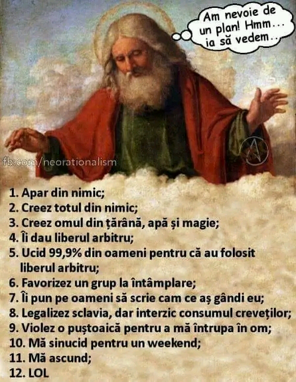 Și ce se spunea acolo?!- era o aceeași ‘pledoarie’ (!) pentru ‘modernizarea’ religiei! (deși în capitolul ‘Apocalipsa’ se spunea că este o mare greșeală așa ceva!: pedepsită cu scoaterea din ‘Cartea Vieții’!- adică Biblia!). Astfel, preotul Necula se gândea să exprime tot corpul prin…energie! (fără alte nivele materiale!). Și cum energia era invizibilă,sesizată doar prin efecte…rezulta că ‘Dumnezeu era la fel’!: o ‘energie inteligentă, care dirijează universul’! (și atunci când explodau stelele, sau erau înghițite de găuri negre?!- da!: fiindcă atunci se manifesta…’creativitatea prin distrugere a lui Dumnezeu’!). Iar doctorul neurolog Ciurea mergea pe aceeași ‘idee’!: înlocuind ‘fenomenul încă inexplicabil’…cu ‘Dumnezeu’! Astfel, se ‘confunda’ activarea unor centri nervoși din creier, atunci când se asculta un mesaj religios, cu…’prezența lui Dumnezeu în creier’! Deci,iată ‘esența credinței’!: omul nu era altceva decât o…energie electromagnetică,manipulată de la un ‘pupitru/altar divin’! Eventual,prin vocea profundă,vibrantă a unui preot ‘cu experiență’! Atunci apăreau…’monștrii,zombii’ etc! (ca o ‘veșnică împotrivire la Dumnezeu’!).Căci orice ‘concept infinit de bun’ avea și o ‘opoziție’!- dar ‘bunătatea’ nu putea fi descrisă decât…apofatic! (prin negativ!)- deci…nu putea fi descrisă!