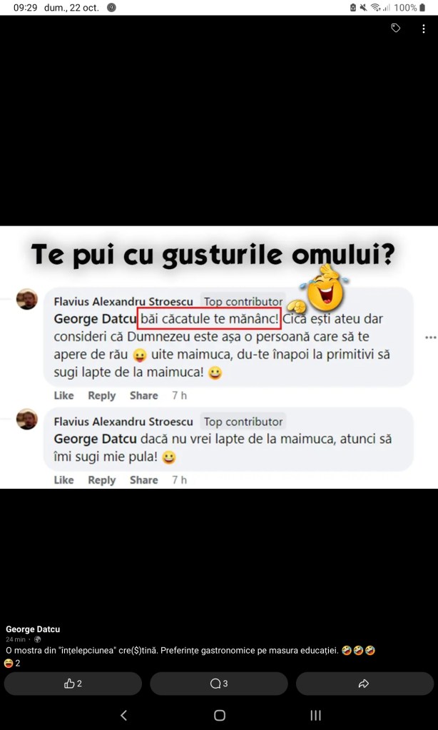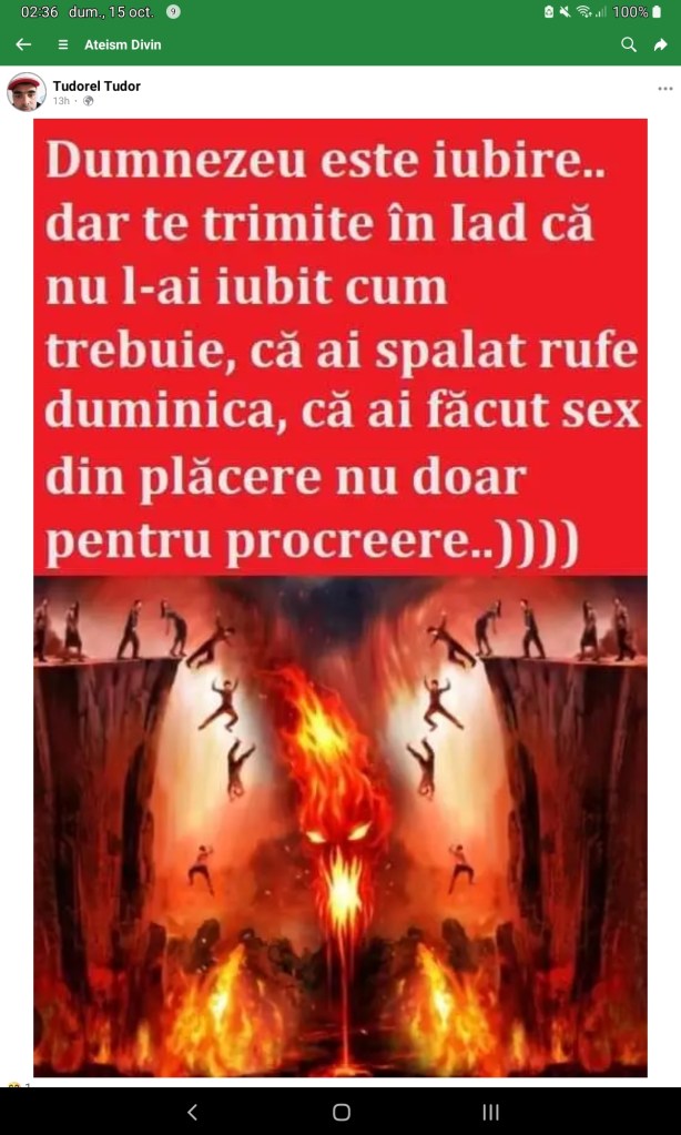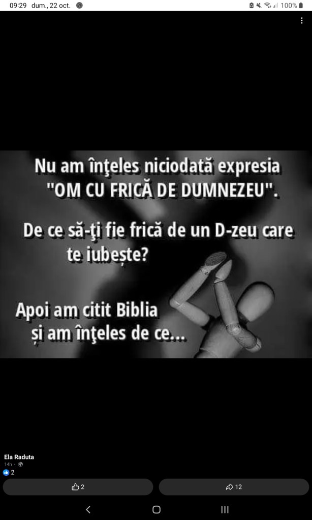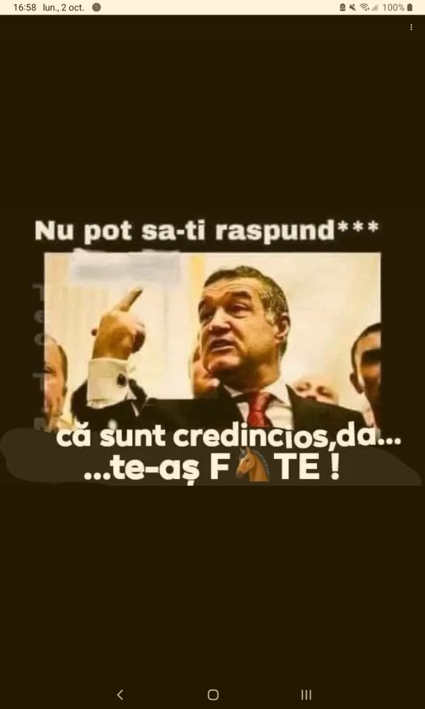 Care ar putea fi ‘reacția’ unui ‘credincios’ (citește: hipnotizat!) care află că toată ‘credința’ lui nu e decât o…’vrăjeală’?! Exact ca aceea a unui bețiv, sau drogat, care află că substanțele lui preferate sunt ceva ‘rău’! Se revoltă!- blesteamă!- și pornește chiar la o ‘acțiune sfântă de pedepsire’ a celor care l-ar lipsi de substanțele…’atât de dragi lui’! Și cică ‘ăsta’ ar reprezenta…’adevărul credinței’!- faptul că omul…’nu poate trăi fără Dumnezeu’! Chiar se afirma (la postul deja ‘NonRezist’!) că, dacă ar încerca cineva să atace ortodoxia, ar însemna că…’se atacă ființa poporului român’!- care nu poate fi decât ‘credincios ortodox’! (o subordonare totală către o doctrină!- dar numită…’libertate’!). Nu mai conta atunci că evlaviosul domn Gigi Becali,care predica pentru pace,liniște și dreptate…se mai și ‘scăpa’ din când în când!- iar în relația cu Cristian Tudor Popescu…îl lovea! (cu o…’mânie sfântă’,însă!). Iar în alte ‘afaceri’ (desigur,tot ‘sfinte’ dacă ‘Dumnezeu este peste tot’!)…insista să i se plătească totul,până la ultimul firfiric! (oare nu pomenea și Isus că, dacă pierdea cineva un bănuț/drahmă, îl căuta peste tot?!- ca și Dumnezeu,pe oița pierdută!). Păi nu era asta…’dovada sfințeniei sale’?! Căci, iată!: ‘Duhul Sfânt’ a trecut peste niște ‘reguli cristice’ (că ‘banii sunt ochiul lui Mamona’!; că ‘trebuia să vândă totul și să împartă la săraci’!; că ‘banul trebuie dat Cezarului!- iar ce este al lui Dumnezeu, către/lui Dumnezeu’! etc.), pentru a-l răsplăti pe ‘El, Marele Sfânt în devenire’ (care alunga ‘duhurile rele’ de pe stradă, după parada LGBTQ!) cu…’Harul îmbogățirii’! Căci,da!: în această doctrină de…’gumilastic spiritual’ (dar care era compusă doar din ‘Nu’ și ‘Da’!- și fără jurămintele pe Biblie!) era posibil să ‘demonstrezi orice’! (dacă ești hipnotizat!). Ca atare,nici Gigi Becali nu și-a mai respectat dorința de a da averea… Bisericii!- ci a păstrat-o pentru el! (probabil, pentru a o ‘sfinți personal’!). Păi nu spunea tot Isus că un credincios este răsplătit însutit?! La început ‘darurile’ or fi fost…’spiritiste’!- dar ulterior se ‘descoperea’ (precum la preotul Gh.Holban) că spiritul era ‘legat’ de materie! Deci și banii contribuiau la…’venerarea sfântă’! (precum în bisericile aurite!).